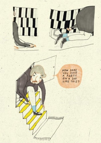 “How dare you have a party on a day like this?” The comics collage 'Hideous Fiesta' by the Finnish visual artist and musician Heta Bilaletdin is a story about a mysterious party and questions of freedom.