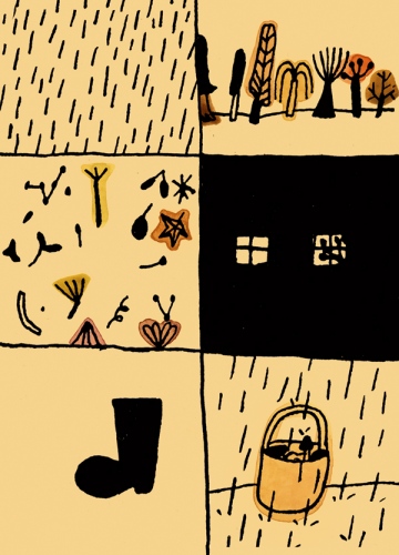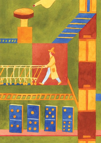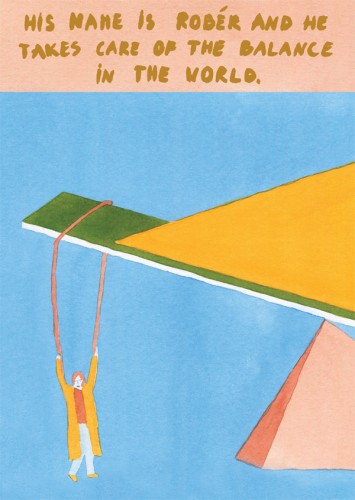 Robér takes care of the world’s balance. On his day off he’s powerless - accidents start to develop and Robér worries that everything will collapse. Domino is written by Anete Daubure and drawn by her sister Rūta Daubure.