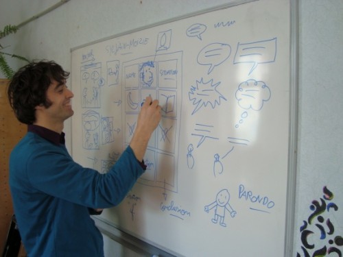 Sylvain-Moizie from Strasbourg came to Latvia to hold 2 workshops to introduce the way how to create comics. The first one was two days at the Art School of Valmiera and the second one was one day at the Latvian Art Academy in Riga.