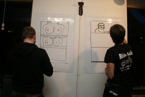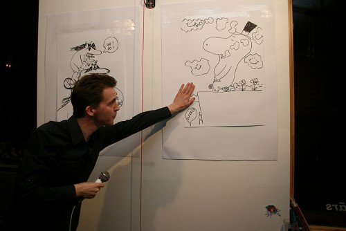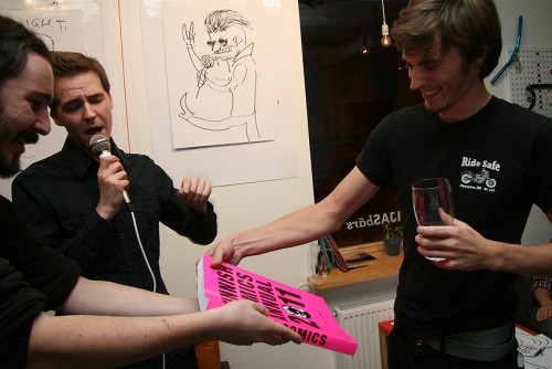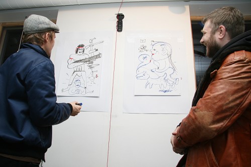The special Finnish issue was launched with the participation of Finnish artist in the first comics battle in Latvia. The show was led by Petri Koikkalainen and the contestants where Mikko Väyrynen and Jarno Lava-Nikkola from Finland and Reinis Pētersons, Oskars Pavlovskis, Ingrīda Pičukāne, Maija Līduma, Aivars Baranovs and Mārtiņš Zutis from Latvia. The winner of the battle was Oskars Pavlovskis. NExt to the battle there was also a small silkscreen print exhibition by KutiKuti and music by „Vairāk kauna nav", VJ Inese Vēriņa, Oskars Veilands, Roberts Galviņš and DJ Agris from Dirty Deal Audio