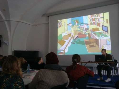 The illustrators and comic artists Hamish Steele and Alexis Deacon from the UK held a public presentation. They showed their portfolios and talked about their work in comics, illustration and animation.